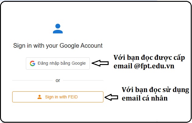 - Đăng nhập bằng google: Áp dụng với bạn đọc được Nhà trường cấp email @fpt.edu.vn;