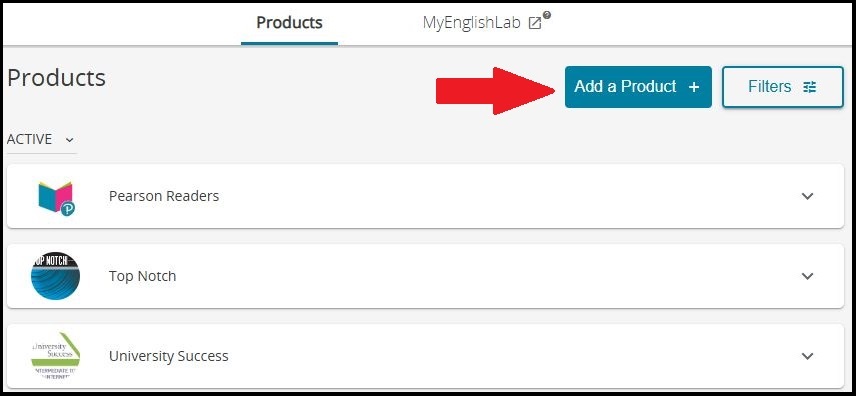 - Mở tài khoản MyEnglishLab đã tạo, chọn mục Add a product